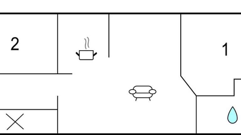 Das Ferienhaus umfasst 2 Schlafzimmer, ein Wohnzimmer sowie eine voll ausgestattete Küche mit Kühlschrank und Kaffeemaschine. Das Badezimmer ist mit einer Dusche ausgestattet. Für Bequemlichkeit sorgen auch Klimaanlage und Heizung.