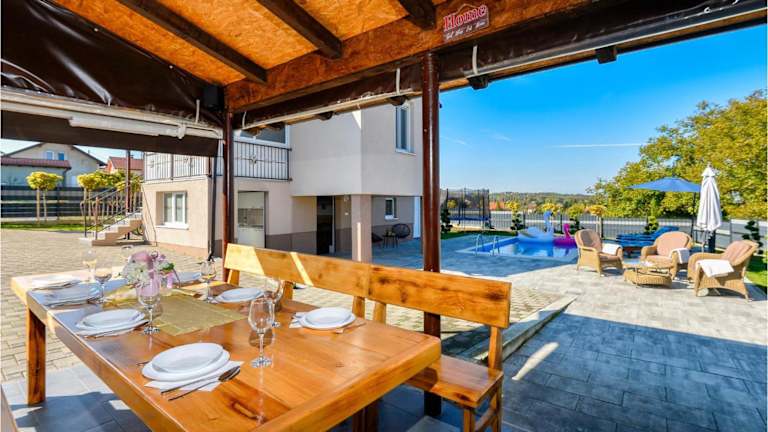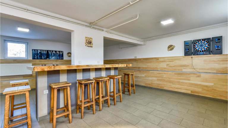 Das Sport- und Freizeitangebot umfasst unter anderem einen Aussenpool, Dart, Badmintonzubehör sowie eine Gartenmöbel-Ausstattung für entspannende Stunden im Freien. Für Kinder stehen Outdoorspielgeräte zur Verfügung.