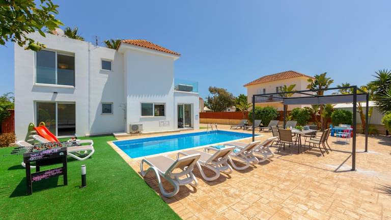 Ayia Napa Marina Vibes ist eine hervorragend ausgestattete Villa, die über einen Aussenpool, einen Garten und eine einladende Terrasse verfügt. Die Unterkunft ist geeignett für Feriengäste, die Entspannung und Aktivitäten in der Nähe suchen. Die Villa bietet Platz für bis zu 8 Gäste und hat eine rauchfreie Umgebung.