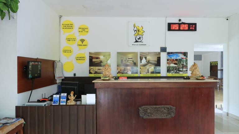 Das Ayu Lili Garden Hotel Kuta bietet eine heimelige Atmosphäre inmitten tropischer Vegetation. Zur Einrichtung des Hotels gehören ein Aussenpool mit Sonnenterrasse, ein Garten zur Entspannung sowie eine 24-Stunden-Rezeption. Das freundliche Personal ist gerne bei allen Anliegen behilflich. Ein Zimmerservice sowie ein Wäscheservice stehen gegen zusätzlichen Aufpreis zur Verfügung.