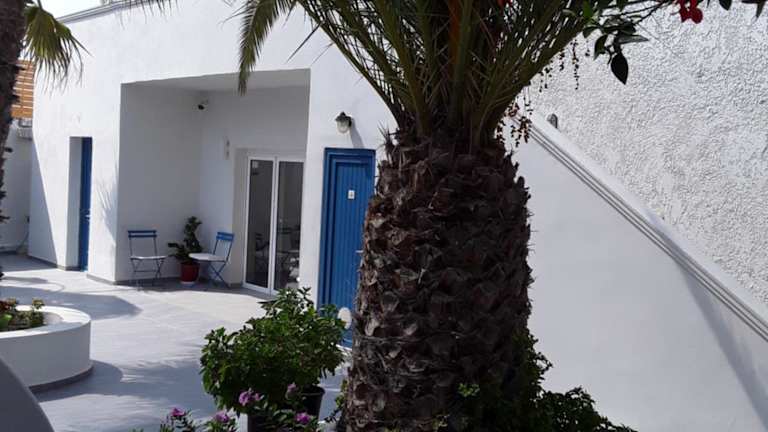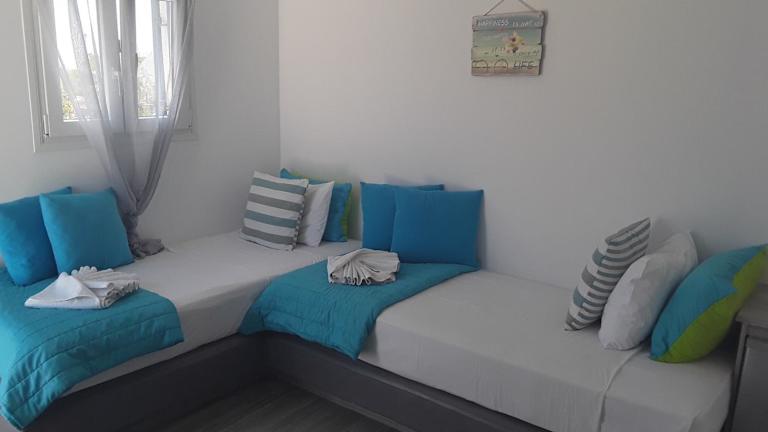Die Apartments liegen in Kamari, einem bekannten Badeort auf Santorini, nur etwa 100 Meter vom schwarzen Sandstrand entfernt. Rund um die Unterkunft finden Gäste zahlreiche Einkaufs- und Unterhaltungsmöglichkeiten sowie verschiedene Wassersportarten. Die Inselhauptstadt Fira liegt etwa 7 km entfernt und ist mit öffentlichen Verkehrsmitteln gut erreichbar.