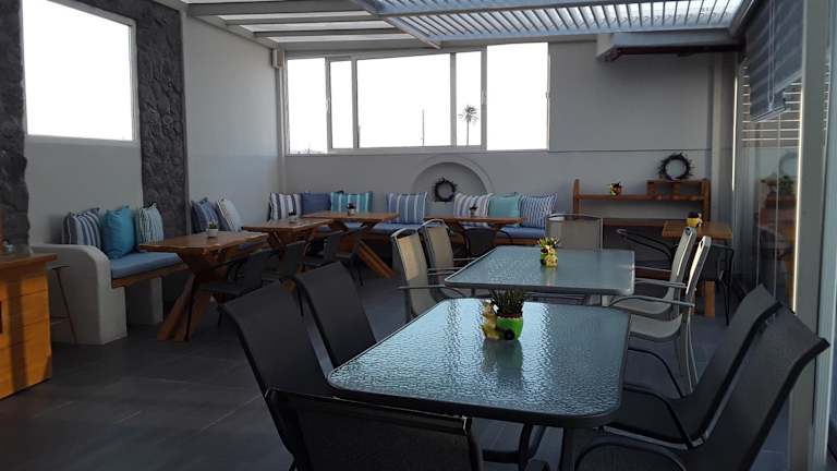 In der Unterkunft befindet sich eine Bar, die Erfrischungsgetränke und kleine Snacks anbietet. Gäste können sich zudem in den vielen Strandbars und Restaurants im Dorf Kamari mit lokalen Spezialitäten verwöhnen lassen.