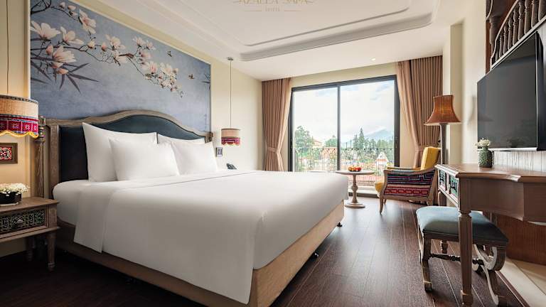 Die Zimmer im Azalea Sapa Hotel sind klimatisiert und bieten eine umfangreiche Ausstattung, darunter einen Schreibtisch, einen Safe, einen Flachbild-TV und ein eigenes Badezimmer mit Dusche. Alle Zimmer sind mit einem Balkon ausgestattet und einige bieten Stadtblick. Ein Kleiderschrank ist ebenfalls vorhanden.