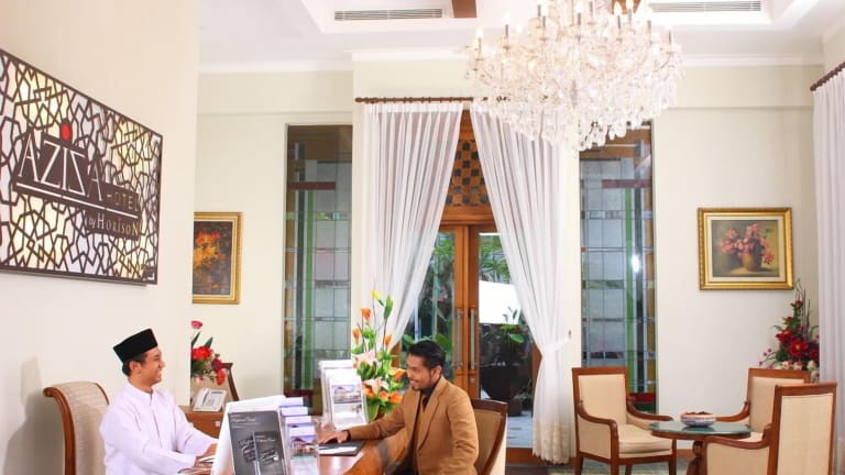 Das Aziza Syariah Hotel Solo by Horison bietet eine komfortable Unterkunft mit einem Aufzug, einer Rezeption und verschiedenen Serviceleistungen. Zu den Annehmlichkeiten zählen eine Gepäckaufbewahrung, ein Safe, ein Garten für Entspannung, ein TV-Raum und ein Business-Center. Die Gäste können kostenlos auf dem Parkplatz des Hotels parkieren. Weiterhin werden eine Autovermietung, ein Transferservice, ein 24-Stunden-Zimmerservice sowie Wäschedienste angeboten. WLAN steht ebenfalls zur Verfügung.