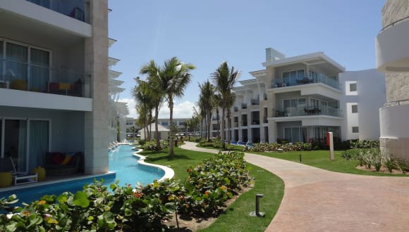 Das Azul Beach Punta Cana befindet sich in Uvero Alto, direkt am Sandstrand. Die Umgebung bietet Einkaufsmöglichkeiten wie einen Supermarkt und Souvenirshop, sowie ein Naturschutzgebiet in der Nähe, das für Ausflüge geeignet ist. Der internationale Flughafen Punta Cana ist etwa 14 km entfernt.