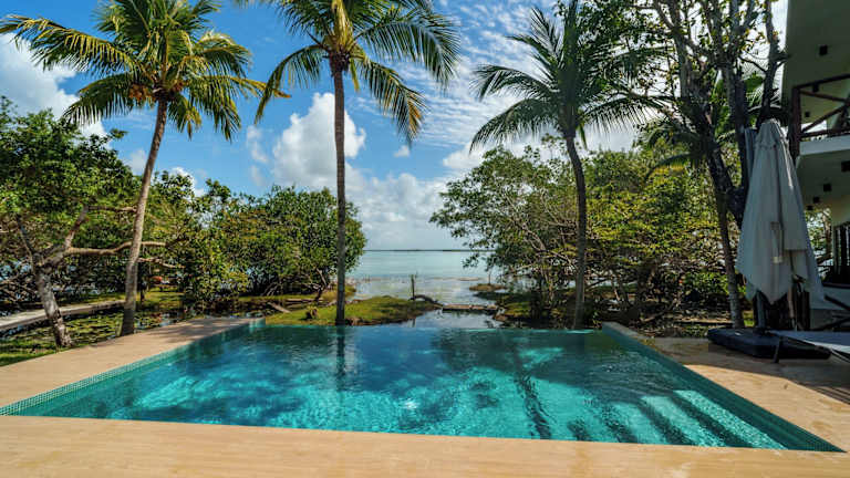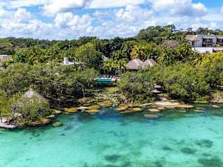 Das Hotel befindet sich in Bacalar, direkt am Strand und bietet eine malerische Aussicht auf die Lagune. Die Umgebung lädt zum Entspannen und zum Ausprobieren von Wassersportarten ein.
