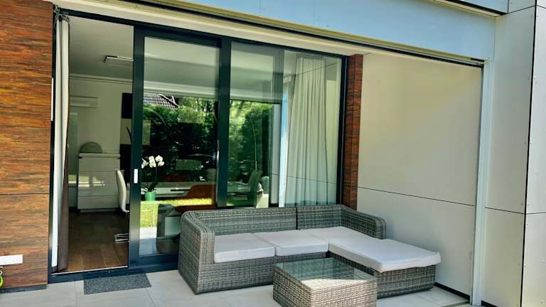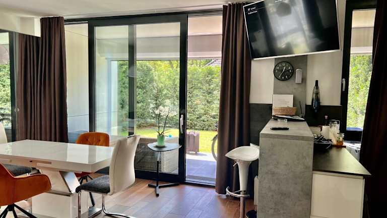 Die Ferienwohnung ist mit einem Schlafzimmer, einer Küche mit Kühlschrank und Geschirrspüler, einem Flachbild-TV, einem Sitzbereich sowie einem Badezimmer mit Dusche ausgestattet. Handtücher und Bettwäsche werden bereitgestellt.