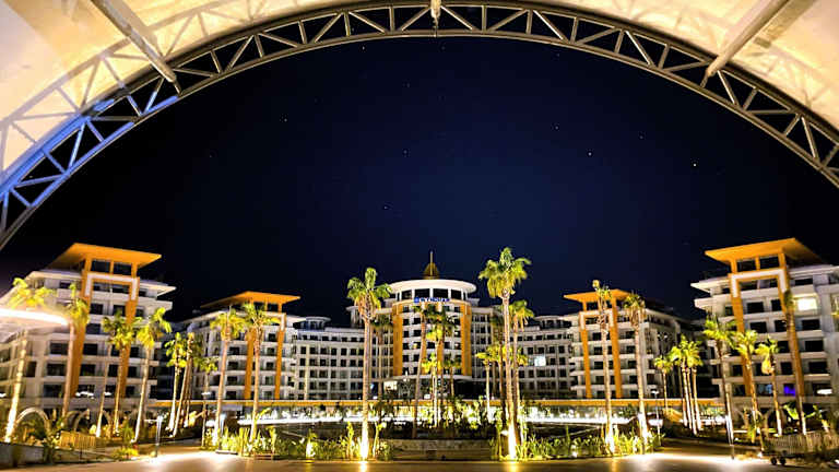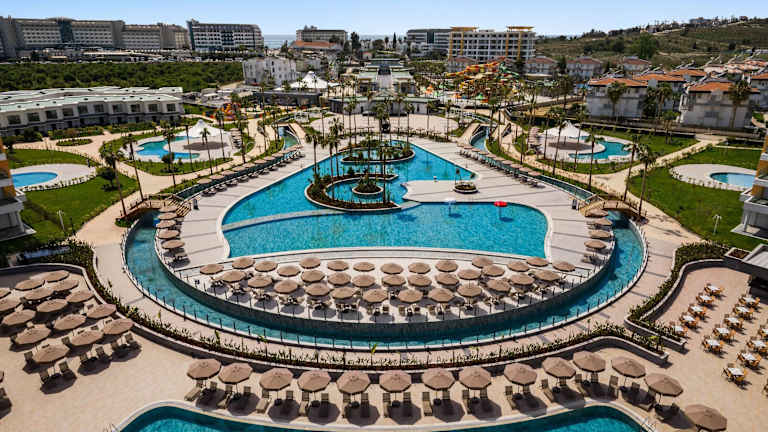 Das Azura World Hotel verfügt über 188 Zimmer, die sich auf 6 Etagen in einem Gebäude verteilen. Die Rezeption ist rund um die Uhr geöffnet und das Personal spricht mehrere Sprachen, darunter Deutsch, Englisch, Russisch und Türkisch. Die Anlage bietet verschiedene Serviceleistungen wie einen Souvenirshop, einen Friseur und einen Wäscheservice, sowie Tagungseinrichtungen mit einem klimatisierten Konferenzraum. Das Hotel bietet zudem drei Pools, darunter einen Outdoor-Pool, einen Aquapark mit acht Wasserrutschen und einen Indoor-Pool. WLAN ist in der gesamten Anlage kostenfrei verfügbar. Das Hotel hat erst 2025 eröffnet.