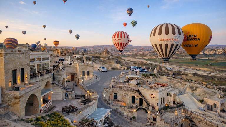 Das Azure Cave Suites - Cappadocia befindet sich in den Hügeln des Göreme Nationalparks und bietet einen spektakulären Blick auf die umliegende Landschaft. Die Lage ermöglicht es den Gästen, die Schönheit der Region zu erkunden und Aktivitäten wie Heißluftballonfahrten und Wanderungen zu unternehmen. Das Freilichtmuseum Göreme und der Flughafen Nevşehir sind ebenfalls in der Nähe.