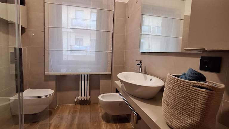 Die Unterkunft bietet zwei Schlafzimmer, ein Wohnzimmer sowie eine voll ausgestattete Küche mit Kühlschrank und Kaffeemaschine. Es sind zwei Badezimmer mit Bidet und Dusche vorhanden. Zudem werden Handtücher und Bettwäsche zur Verfügung gestellt.