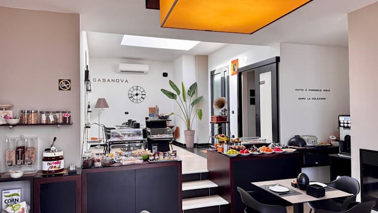 Das Frühstück umfasst ein reichhaltiges Buffet mit kontinentalen und italienischen Optionen. Zudem findet sich in der Unterkunft ein Restaurant, das italienische Küche serviert. Ein Garten und eine Gemeinschaftslounge stehen zur Verfügung, um sich zu entspannen.
