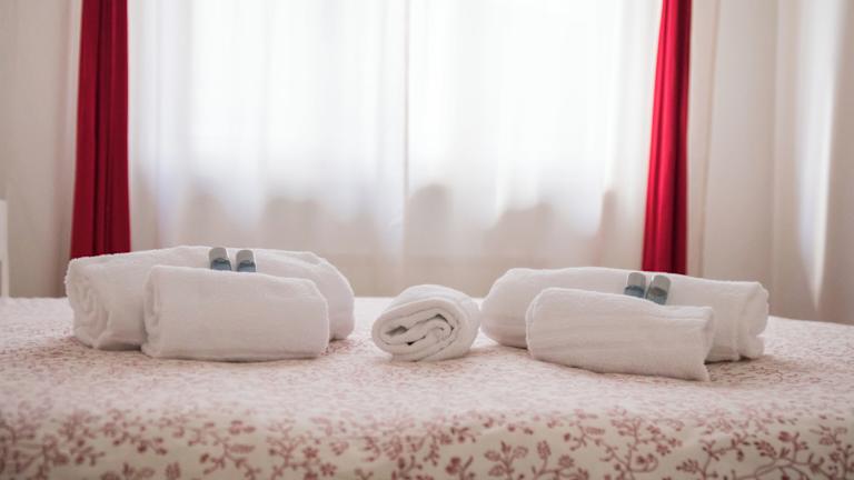 Die Zimmer sind mit Parkettboden, einem Flachbild-TV sowie teilweise einem Balkon und Klimaanlage ausgestattet. Jedes Zimmer verfügt über ein eigenes Bad, entweder im oder ausserhalb des Zimmers, mit Badewanne oder Dusche, Bidet und Haartrockner.