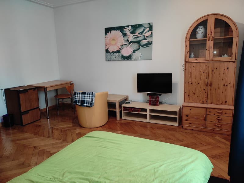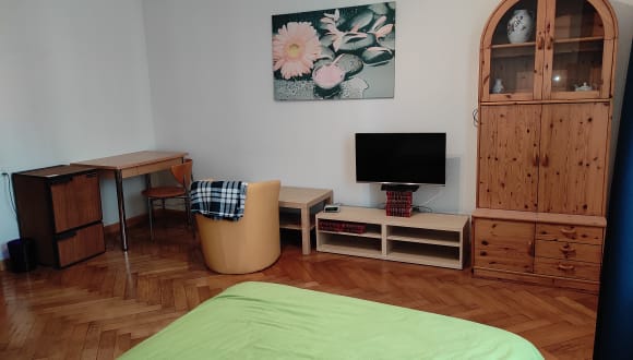 Das Zimmer hat 20m2 ist für 1-2 Personen ideal auch für länger und der original Holzboden gibt den besonderen Charme!