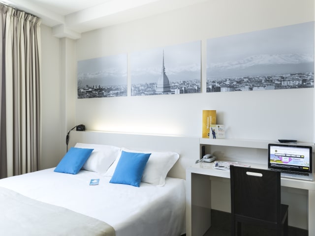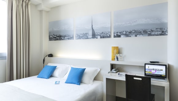 Das B&B Hotel Torino verfügt über 81 moderne Zimmer, die mit Designermöbeln und Teppichboden ausgestattet sind. Jedes Zimmer bietet Ihnen eine angenehme Atmosphäre und verfügt über Annehmlichkeiten wie Klimaanlage, Safe, Minibar und Schreibtisch. Ein 26-Zoll-LCD-Sat-TV mit kostenlosen Sky-Kanälen sorgt für Unterhaltung. Das Hotel bietet auch rollstuhlgerechte Zimmer.