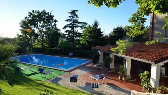 Die Unterkunft Villa dell'Artista - Villa Anna befindet sich in Santarcangelo di Romagna, nur wenige Kilometer vom Wasser entfernt. Die nächstgelegene Stadt Rimini ist in 11 km erreichbar, ebenso die Messe Rimini Fiera. Der Flughafen Federico Fellini liegt 14 km entfernt.