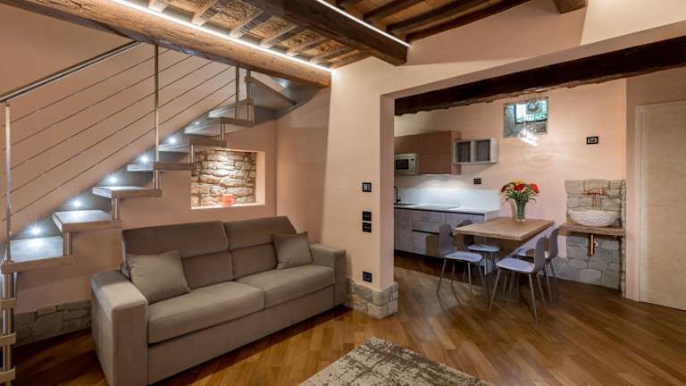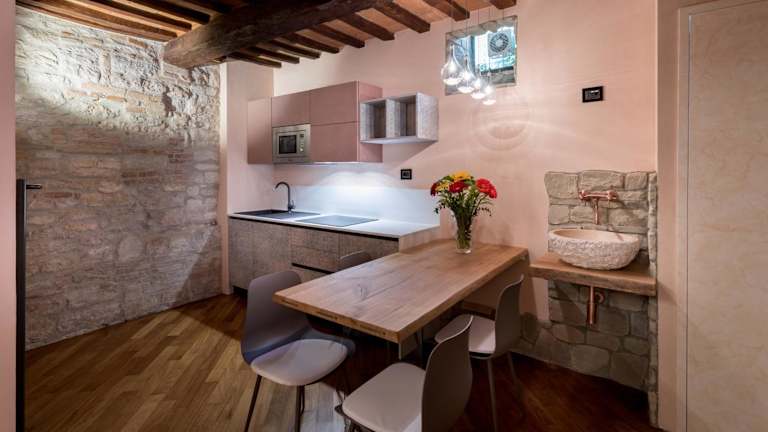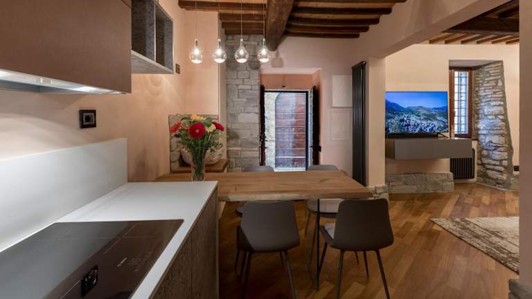 B&B Luxury Apartment Suite Gubbio 2 camere e divano letto bietet Übernachtungsmöglichkeiten in Form einer modernen Ferienwohnung mit einer Bar. Die Unterkunft verfügt über kostenloses WLAN und ist klimatisiert.