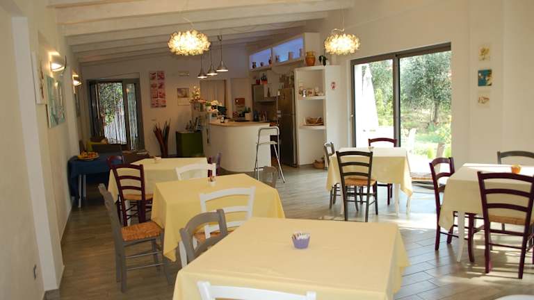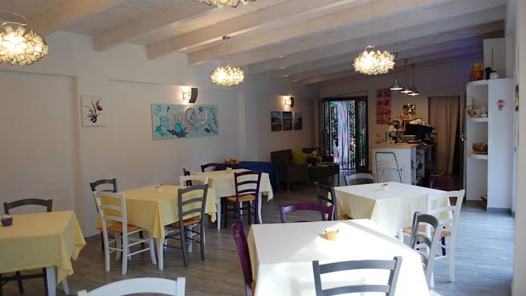 Ein reichhaltiges Frühstück wird in Form eines Buffets angeboten, welches kontinentale oder italienische Speisen umfasst. Es gibt auch ein Café vor Ort, wo Gäste kleine Snacks und Getränke erhalten können.