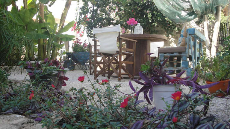 Ein hausgemachtes Frühstück wird im Garten serviert. Auch Essenslieferungen in die Unterkunft sind möglich.