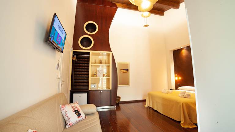 Das B&B Ninfeo Siracusa - Rooms & Breakfast bietet einheimelige Wohneinheiten mit kostenlosem Wifi, Klimaanlage, einer gemütlichen Gemeinschaftslounge und einer einladenden Terrasse. Die Unterkunft hat einen Flachbild-TV sowie ein eigenes Badezimmer mit kostenlosen Pflegeprodukten, einem Haartrockner und einem Bidet. Für zusätzlichen Komfort sind eine Mikrowelle, eine Minibar, ein Toaster sowie ein Wasserkocher vorhanden.