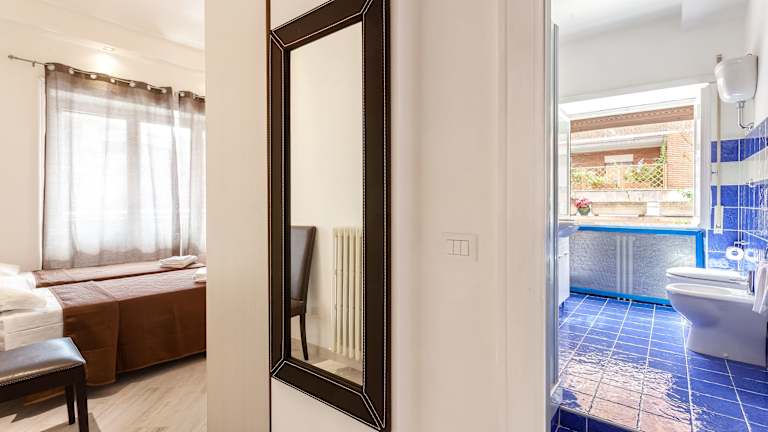 Jedes der klimatisierten Zimmer im Sol Romae verfügt über einen Flachbild-Sat-TV und eine grosse Dusche. Einige Zimmer besitzen zusätzlich eine Terrasse. Die Unterkunft bietet auch allergikerfreundliche Zimmer an.