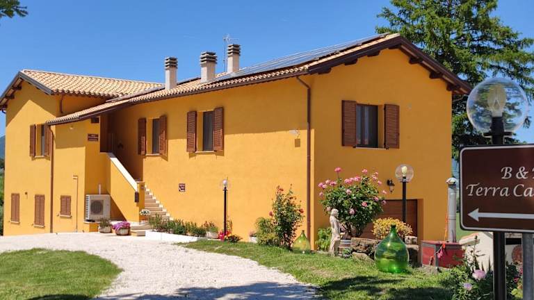Das B&B Terra Camerte bietet Übernachtungsmöglichkeiten in einem angenehmen Umfeld mit einem Garten, einer Gemeinschaftslounge und Zimmerservice. Die Unterkunft zeichnet sich durch schallisolierte Zimmer aus und legt Wert auf Sauberkeit und Sicherheit der Gäste.