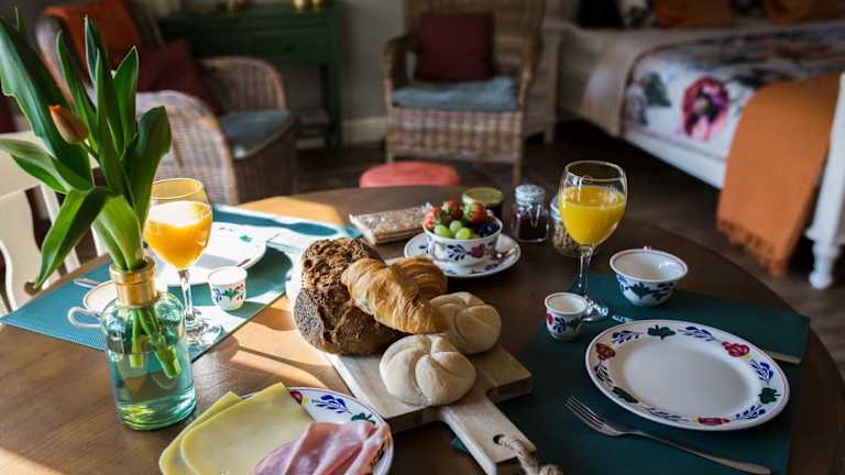 Das Angebot umfasst ein Frühstück im Zimmer. Zudem gibt es vor Ort ein Café, in dem Wein oder Sekt erhältlich ist. es werden keine spezifischen Informationen zu weiteren Mahlzeiten bereitgestellt.