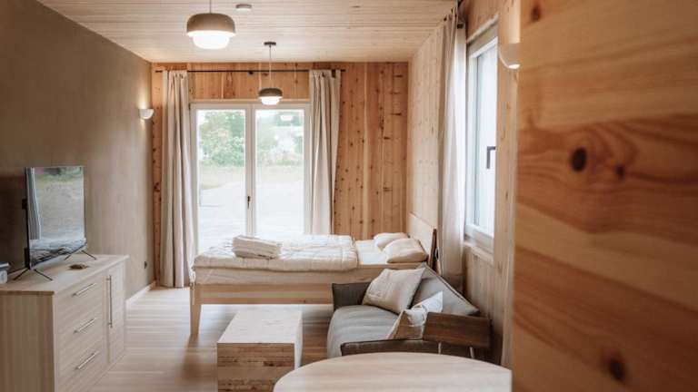 Die Zimmer sind ausgestattet mit einem Kühlschrank, Geschirrspüler, Kaffeemaschine, Dusche, Haartrockner und Schreibtisch. Jedes Zimmer hat ein eigenes Badezimmer, einen Safe und kostenloses Wifi. Gewisse Zimmer verfügen über einen Balkon und andere bieten Seeblick. Bettwäsche und Handtücher sind vorhanden und werden nach den Richtlinien der örtlichen Behörden gewaschen.