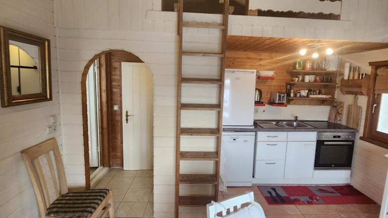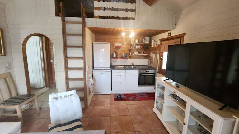 Das Ferienhaus verfügt über ein Schlafzimmer und ist mit einer Küchenzeile, die mit einem Kühlschrank ausgestattet ist, sowie einem Badezimmer mit einer Dusche und Waschmaschine eingerichtet. Handtücher und Bettwäsche werden zur Verfügung gestellt.