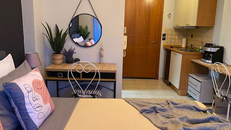 Die Ferienwohnung ist klimatisiert und besteht aus einem Schlafzimmer sowie einer voll ausgestatteten Küche. Ein Balkon mit Gartenblick gehört ebenfalls zur Ausstattung. Zudem gibt es einen Flachbild-TV und die Zimmer sind schallisoliert. Bettwäsche, Handtücher und weitere Wäsche werden entsprechend den Vorschriften gewaschen.
