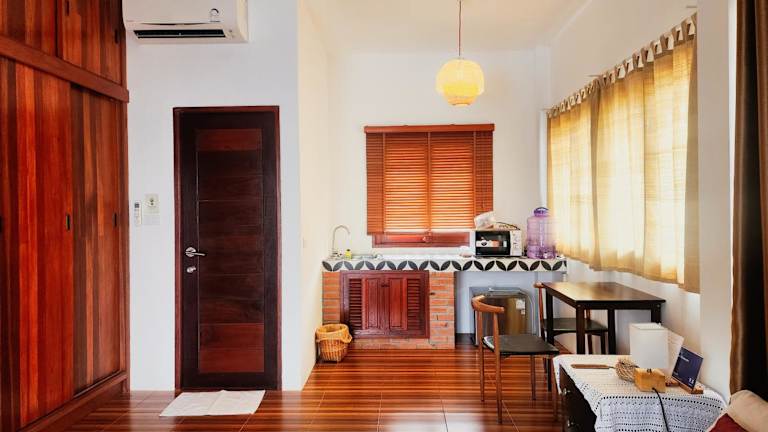 Die Wohneinheiten sind klimatisiert und verfügen über einen Balkon mit Gartenblick. Jede Einheit beinhaltet eine Küchenzeile mit Mikrowelle und ein eigenes Badezimmer mit Dusche. Sitzgelegenheiten und Essbereiche sind ebenfalls vorhanden.