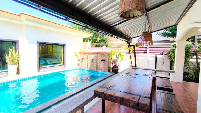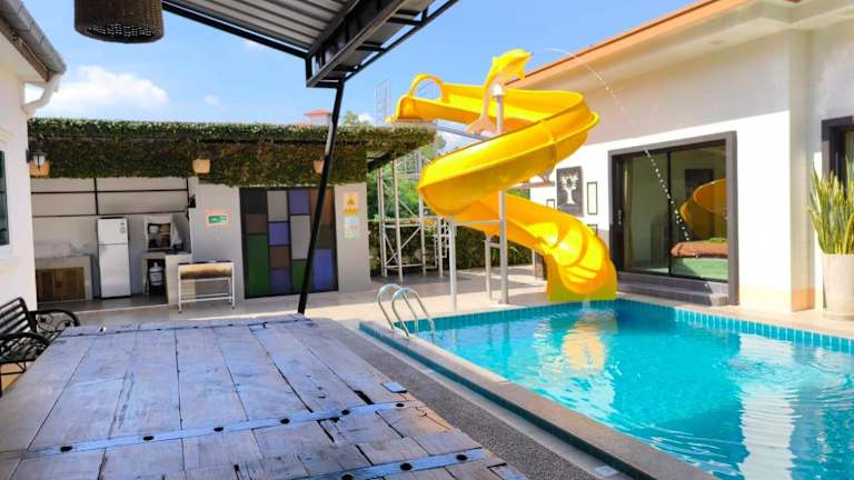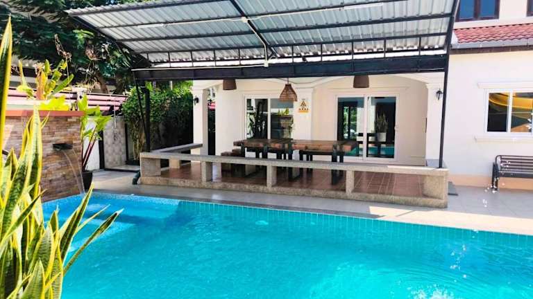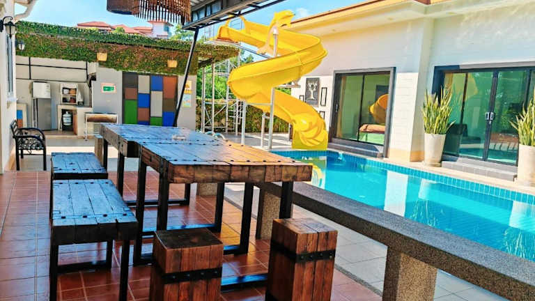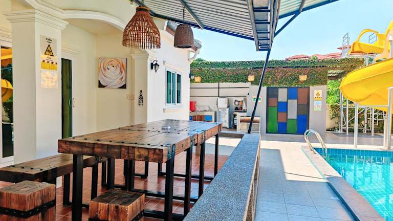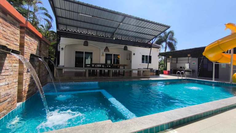 Baan Big Family Pool Villa bietet Übernachtungsmöglichkeiten in einem grosszügigen Ferienhaus mit Garten. Die Unterkunft umfasst einen eigenen Pool und einen Aussenpool, ideal für Familien. Es steht ein Restaurant zur Verfügung, und Gäste haben Zugang zu kostenlosem WLAN.