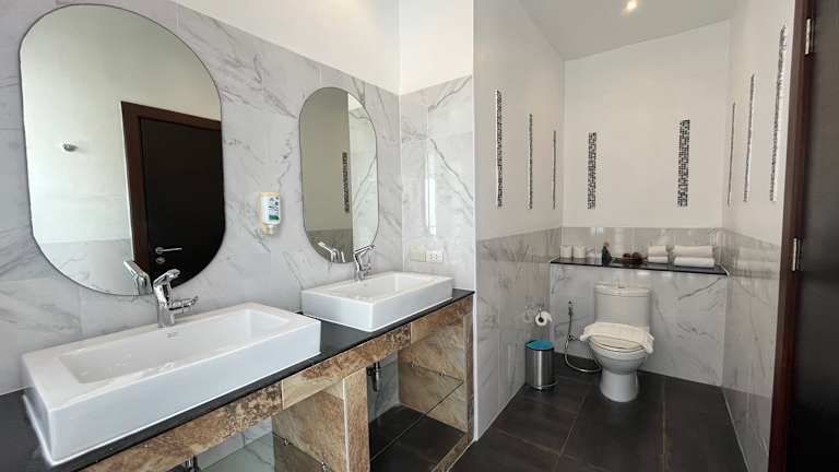 Die Villa im Baan Eng Fah ist luxuriös und komfortabel eingerichtet. Sie verfügt über zwei geräumige Schlafzimmer, ein großes Wohnzimmer und eine voll ausgestattete Küche mit einem Kühlschrank und einer Kaffeemaschine. Die klimatisierte Villa bietet zudem zwei Badezimmer mit einer Dusche und kostenlosen Pflegeprodukten. Die Unterkunft ist mit einem eigenen Pool und einer Terrasse ausgestattet, von der aus Sie einen herrlichen Blick auf das Meer genießen können. Kostenloses WLAN steht Ihnen in allen Bereichen der Villa zur Verfügung.