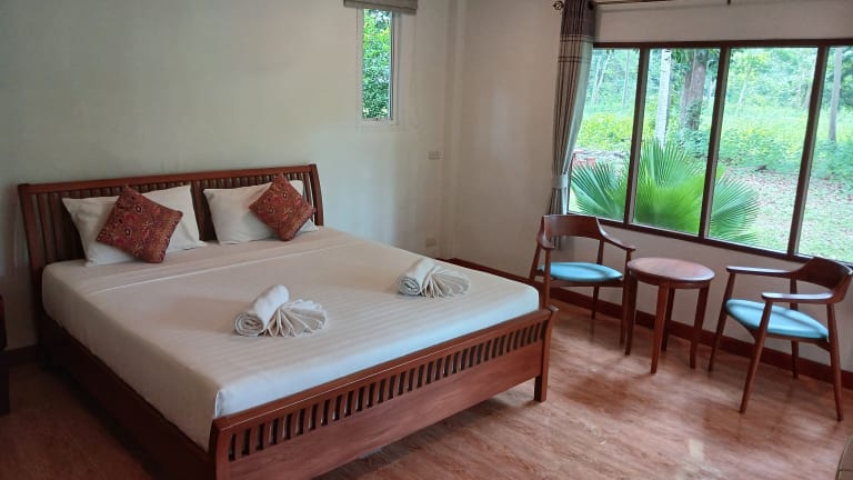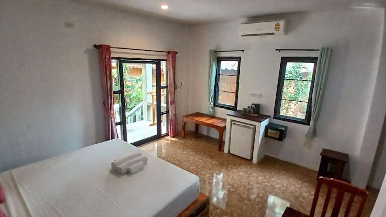 Die klimatisierten Bungalows im Baan Long Beach bieten den Gästen einen gemütlichen Rückzugsort. Jeder Bungalow verfügt über einen eigenen Balkon, auf dem Sie die tropische Umgebung genießen können. Zur Ausstattung gehören auch ein Flachbild-TV und ein Kühlschrank. Ein Wasserkocher und ein Kleiderschrank stehen ebenfalls zur Verfügung. Das Bad ist mit einer Dusche ausgestattet und bietet alles, was Sie für einen angenehmen Aufenthalt benötigen.
