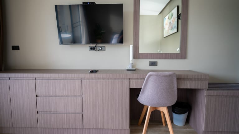 Die Zimmer in der Unterkunft sind modern ausgestattet und bieten ein angenehmes Raumklima durch eine individuell regulierbare Klimaanlage. Jedes Zimmer verfügt über ein eigenes Badezimmer mit Dusche und kostenlosen Pflegeprodukten. Zur Ausstattung gehören ein Flachbild-TV, ein Kühlschrank, eine Kochnische sowie ein Wasserkocher. Ausgewählte Zimmer bieten einen Balkon oder eine Terrasse mit Meerblick. Die Unterbringung bietet auch Nichtraucherzimmer und Familienzimmer.