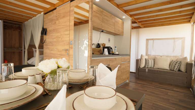 Die Unterkunft bietet verschiedene Freizeitmöglichkeiten, wie einen Kinderspielplatz, Tischtennis, Karaoke und Dart. Zudem sind Wassersportmöglichkeiten vor Ort verfügbar, und es gibt Möglichkeiten für Velo-Touren. Für Fitnessbegeisterte stehen Yogaunterricht und ein umkleidbarer Fitnessbereich bereit.