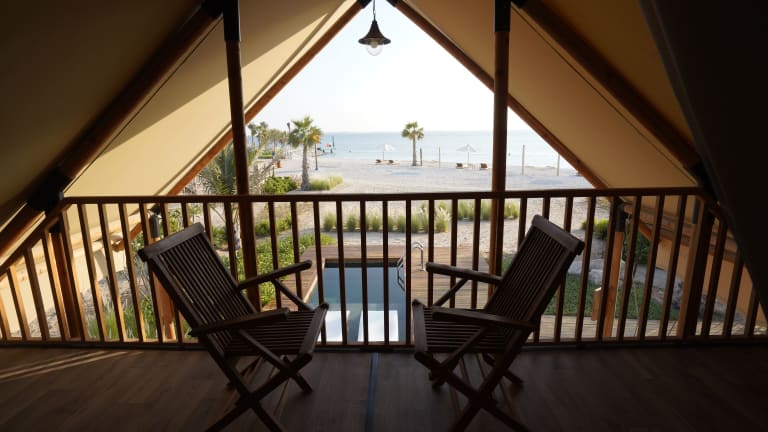 Die Unterkunft Bab Al Nojoum Hudayriyat Camp befindet sich in Abu Dhabi auf der Hudayriyat Insel, umgeben von wunderschönem Meerblick. Der Strand Al Bateen liegt 2,8 km entfernt und das Einkaufszentrum Al Wahda Mall ist 8,9 km entfernt. Der Internationale Flughafen Zayed ist 32 km entfernt.