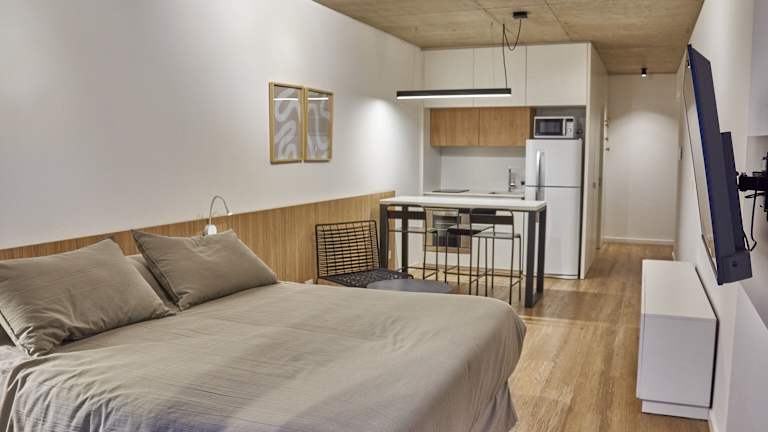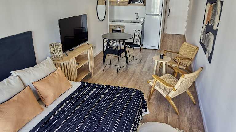 Die Wohneinheiten sind mit kostenlosem Wifi, Klimaanlage, einem Balkon mit Gartenblick, einem Sitzbereich, einem Kabel Flachbild-TV und einem voll ausgestatteten Badezimmer ausgestattet. Jedes Zimmer verfügt über einen Kühlschrank, einen Ofen und ein eigenes Badezimmer mit Bidet, kostenlosen Pflegeprodukten sowie einer Dusche und einem Haartrockner.