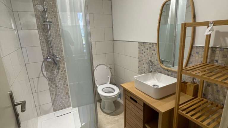 Die Ferienwohnung umfasst zwei Schlafzimmer, eine voll ausgestattete Küche mit Kühlschrank und Mikrowelle sowie ein Badezimmer mit Dusche und Haartrockner. Zur Ausstattung gehört auch ein Flachbild-TV. Auf Wunsch kann ein Babybett bereitgestellt werden.