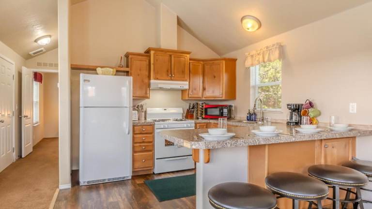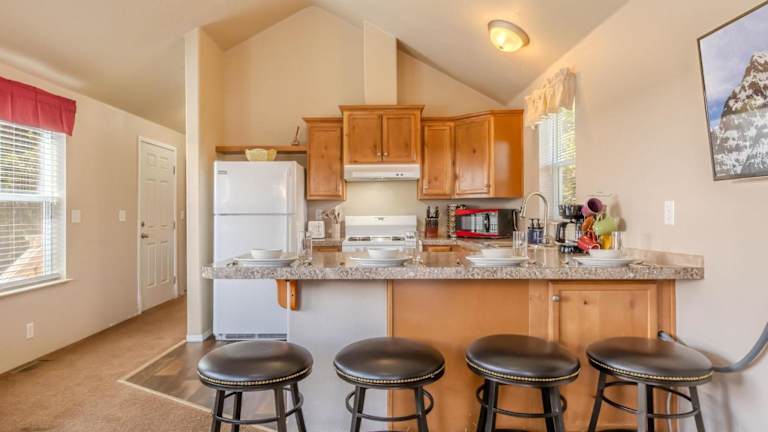 Die Baby Bear Cabin besteht aus einem Schlafzimmer und bietet eine voll ausgestattete Küche mit Kühlschrank und Geschirrspüler. Im Badezimmer befinden sich eine Badewanne, ein Haartrockner und eine Waschmaschine. Handtücher und Bettwäsche sind ebenfalls verfügbar. WLAN ist in der gesamten Unterkunft kostenlos.