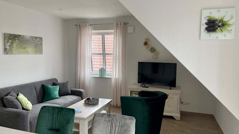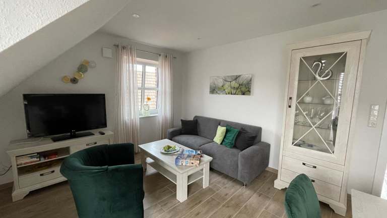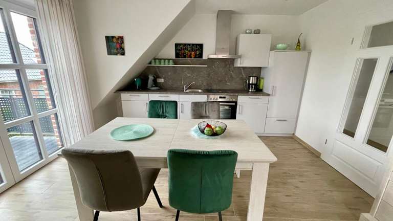 Backbord Greetsiel ist eine hochwertig ausgestattete Ferienwohnung, die mit zwei Schlafzimmern, einer Küchenzeile, einem angenehmen Sitzbereich und zwei Badezimmern ideal für Familien oder Gruppen geeignet ist. Die moderne Einrichtung sorgt für eine heimelige Atmosphäre, während der Balkon eine zusätzliche Möglichkeit bietet, die frische Luft zu geniessen.