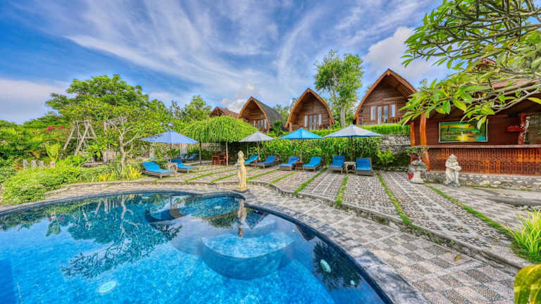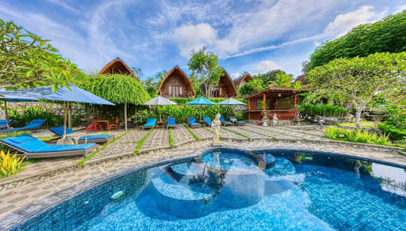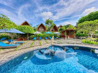 Die Unterkunft Bagia Bungalows befindet sich in Nusa Penida, 10 km von den beeindruckenden Seganing Wasserfällen entfernt. In der Nähe liegen weitere Sehenswürdigkeiten wie der Aussichtspunkt Pulau Seribu (25 km) und der Puncak Mundi Tempel (8,2 km).