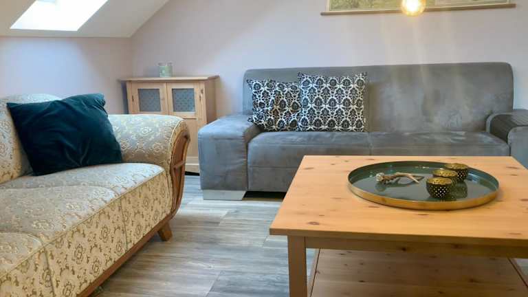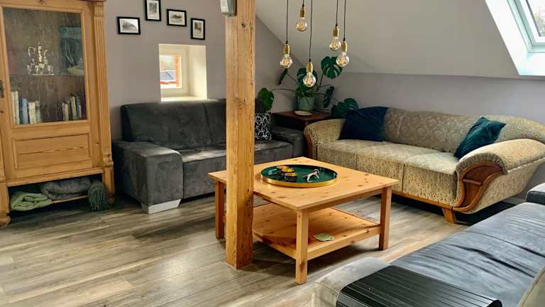 Die Ferienwohnung besteht aus 3 Schlafzimmern, einem Wohnzimmer sowie einer voll ausgestatteten Küche mit Kühlschrank und Kaffeemaschine. Ein Badezimmer mit Dusche und Haartrockner ist ebenfalls vorhanden. Handtücher und Bettwäsche werden bereitgestellt.