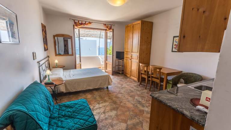 Die Zimmer bieten ein angenehmes Raumklima durch Klimaanlage und Heizung. Die Ausstattung umfasst ein Doppelbett oder Queensize-Bett, eine Kochnische mit Kühlschrank, Tee-/Kaffeemaschine, Safe und Minibar. Einige Zimmer bieten zusätzlich eine Panoramaterrasse. Die Badezimmer sind mit Dusche und Bidet ausgestattet und verfügen über einen Haartrockner. Es sind auch rollstuhlgerechte Zimmer verfügbar.
