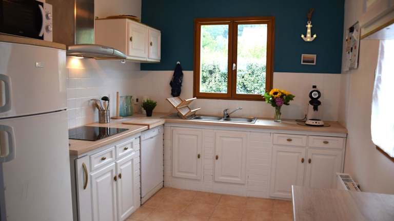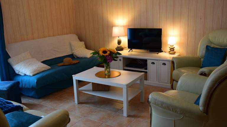 Das Ferienhaus bietet Platz in fünf Schlafzimmern und verfügt über zwei Badezimmer mit Dusche und Badewanne. Die gut ausgestattete Küche umfasst einen Kühlschrank, einen Geschirrspüler und einen Ofen. Ein gemütlicher Sitzbereich und ein Essbereich stehen im Wohnzimmer zur Verfügung, zudem gibt es einen Flachbild-TV und einen DVD-Player. WLAN ist kostenfrei verfügbar.
