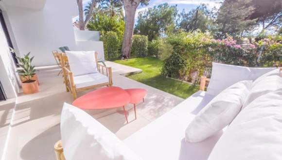Das Bajo con Jardín en la Milla de Oro bietet eine moderne Ferienwohnung mit Klimaanlage, die einen Garten und einen schönen Aussenpool umfasst. Eine rund um die Uhr besetzte Rezeption sorgt für einen angenehmen Aufenthalt.