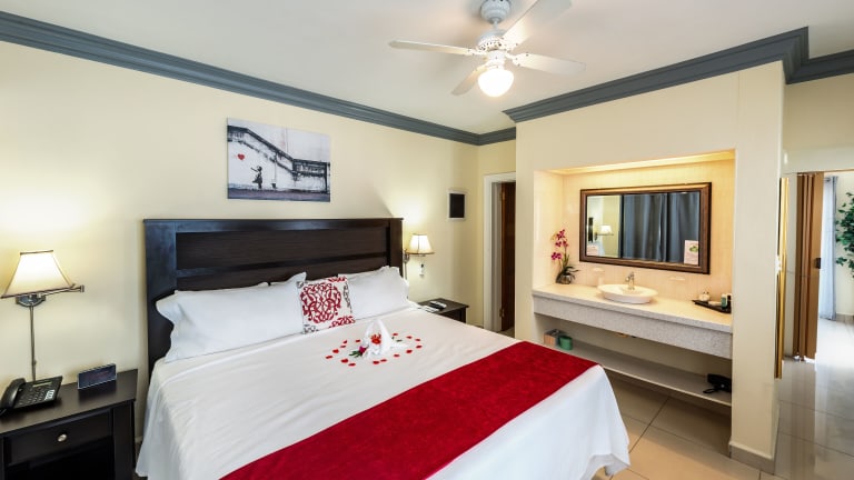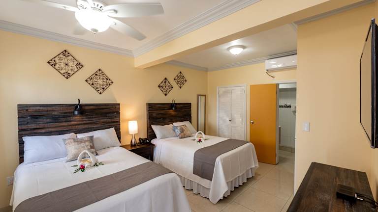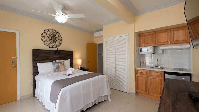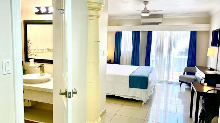 Die Zimmer sind in hellen Farben gestaltet und verfügen über einen TV, Klimaanlage und einen Balkon mit Meerblick. Eine komplett ausgestattete Küche mit Mikrowelle und Backofen ist vorhanden. Jedes Zimmer hat ein eigenes Bad mit einer Dusche, einem Haartrockner und kostenfreien Pflegeprodukten. Zusätzliche Betten oder Babybetten sind gegen einen Aufpreis verfügbar.