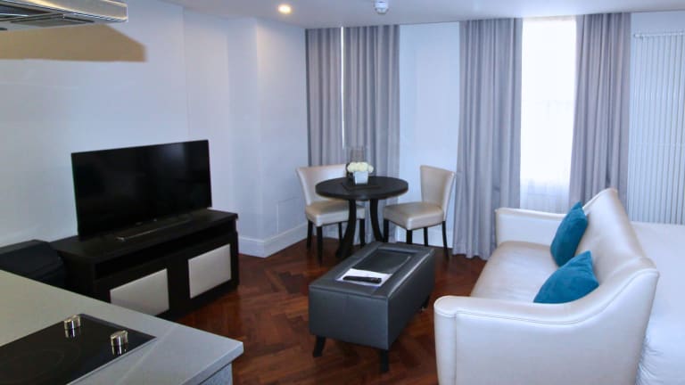 Die Wohneinheiten verfügen über eine voll ausgestattete Küchenzeile mit einem Ofen, einer Mikrowelle, einem Toaster und einem Wasserkocher. Ein Flachbild-TV mit Kabelkanälen sowie ein eigenes Badezimmer mit Dusche und kostenlosen Pflegeprodukten sind ebenfalls vorhanden. Bettwäsche, Handtücher und Wäsche werden nach den Richtlinien der örtlichen Behörden gewaschen.