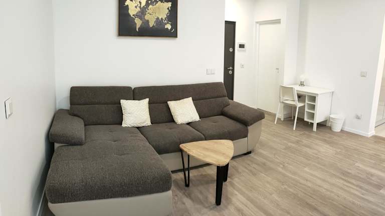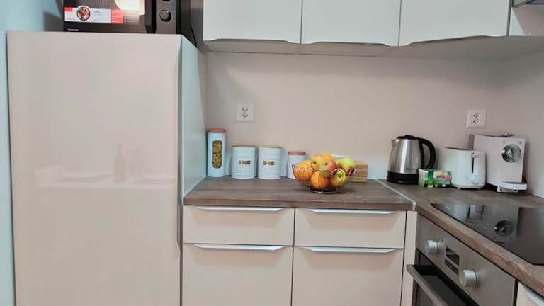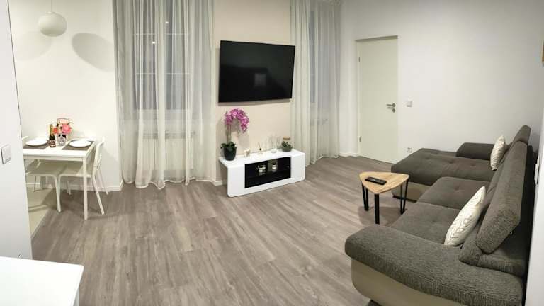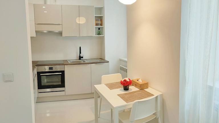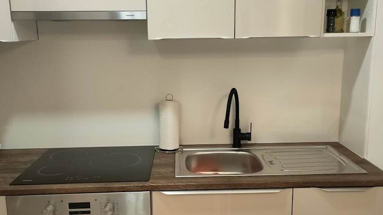 Die Ferienwohnung verfügt über ein Schlafzimmer, eine Küche mit Kühlschrank und Geschirrspüler, einen Flachbild-TV, einen Sitzbereich sowie ein Badezimmer mit Dusche. Handtücher und Bettwäsche werden zur Verfügung gestellt. Die Unterkunft bietet auch einen Waschsalon/Wäscheservice.