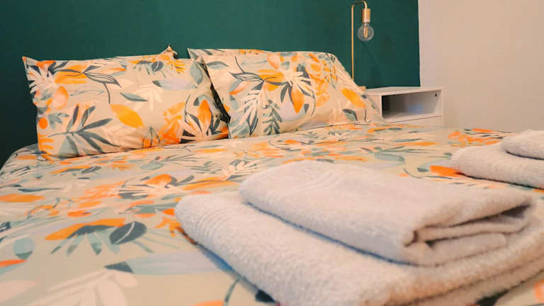 Die Ferienwohnung verfügt über zwei Schlafzimmer und ein Badezimmer. Zur Ausstattung gehören Bettwäsche, Handtücher, ein Flachbild-TV sowie ein Balkon mit Stadtblick. Zudem steht den Gästen eine voll ausgestattete Küche zur Verfügung.