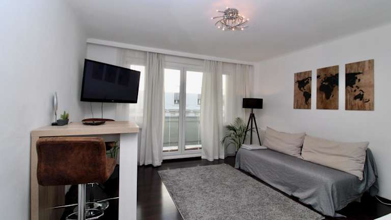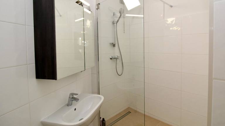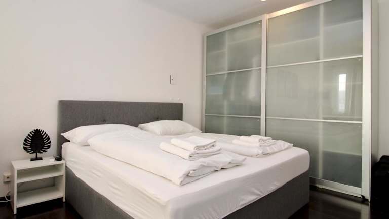 Die Ferienwohnung ist ausgestattet mit einem Schlafzimmer, einer Küche mit Kühlschrank und Geschirrspüler, sowie einem Badezimmer mit Dusche, Haartrockner und Waschmaschine. Handtücher und Bettwäsche werden bereitgestellt.